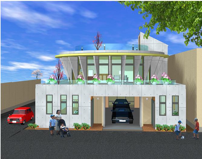 2階住居部は円形とベランダです。